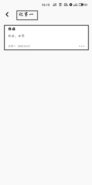8、最后我们就可以在记事一中看到我们创建的标题为“你好”的笔记了
