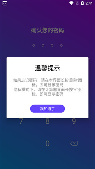 私密空间app是一款专注于对隐私进行保护的手机应用软件,软件由专业的安全团队精心打造,绝对不会泄露自己的隐私。它还能将自己设置成其他的软件,这样即使亲人、同事把玩你的手机也不用担心自己的隐私泄露。软件内置空间非常大,用户可以放心的存储自己的隐私,但是温馨提示,如用户的手机被摔碎,导致文件损坏,那么平台是不会负责滴,软件支持照片、视频等任何文件格式的存储,在也不用担心别人偷看自己的隐私了,同时,软件十分轻巧,一键轻松加密解锁,无需其他繁琐的设置,即可完成隐私的保护,如果你也喜欢这款软件,不妨来下载体验吧!