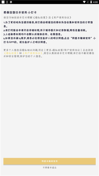 2、请阅读理解隐私政策和用户协议,点击同意并继续使用这款app。