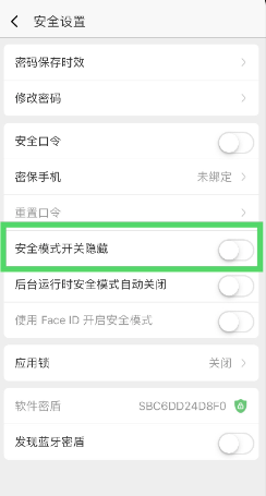 2、安全模式开关隐藏方法:进入【设置】-【安全设置】,轻点【安全模式隐藏开关】