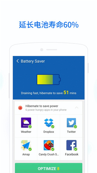 6、超强省电:分析手机耗电信息,一键优化,让你的手机续航更持久。