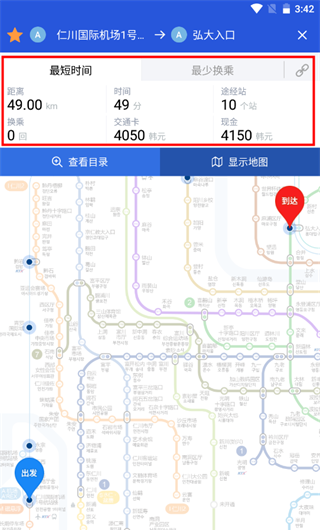 3、提供换乘信息、所需时间、途经地、费用等信息