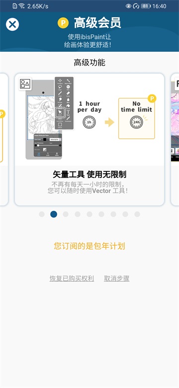 高级会员可以享受更多特权,比如无广告、隐藏水印、无限使用矢量工具等,还能解锁更多的素材和调色板,这对需要长期使用的用户来说很实用。软件亮点包括插图填色功能、丰富的图片库以及多种涂色工具,能满足不同用户的创作需求。