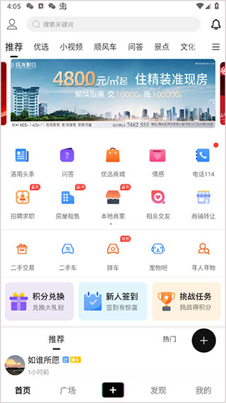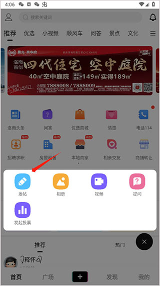 1、首先打开掌上洛南最新版,在首页我们可以看到各种推荐内容
