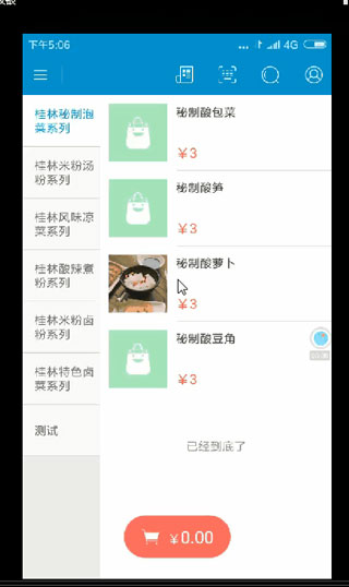 购物车界面可以查看商品清单,可清空商品重新下单,确认下单点击收银;