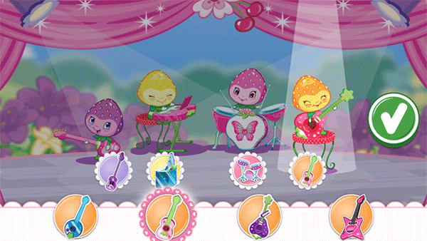 2、来到了音乐台,给乐队选择她们满意的乐器,最后点击√即可