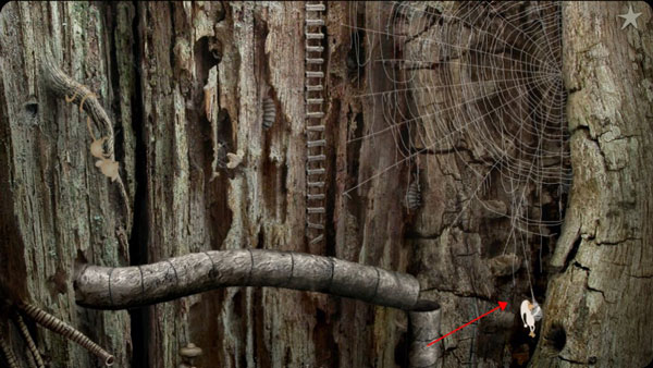 9、等苍蝇停住之后再点击一下苍蝇,让它飞到虫子残骸上去,然后点击一下自己将苍蝇震到蜘蛛网上,等蜘蛛将苍蝇包起来后,点一下蜘蛛丝就能顺势跳入洞中