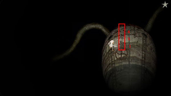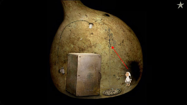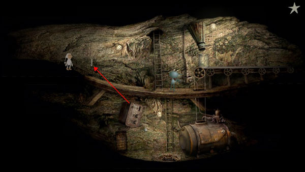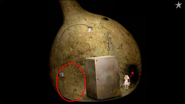 16、按一下左边墙上的开关,让果子停止掉落,然后将右边的果子全都放到左边的篮子中,然后主角进入篮子中,从生产线到老板的房间去