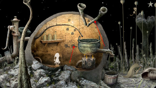 银河历险记2(Samorost 2)是一款由Amanita Design制作发行的解谜冒险游戏,延续了前作精美的画风设计,拥有全新的故事剧情、解谜方式和游戏体验。这款游戏主要讲了一个男孩和一只狗住在只有他们两个人和一栋房子的星球上,一天小狗被外星人抓走了,于是主人展开了救回小狗的冒险之旅,游戏中共设计九个星球,每个星球都有相应的谜题有待玩家解决,玩家需要发挥想象力来寻找正确的解决方法。这款游戏画面一如既往的精致,全部场景纯手绘,给玩家展现了一种有点超现实主义、有点与世隔绝气质风格的异类空间。同时,游戏采用的音乐效果和它的主题一样神秘有趣,背景为静谧的宇宙空间,而外星生物的各种音效则为这个奇妙的冒险增添了无穷的活力。