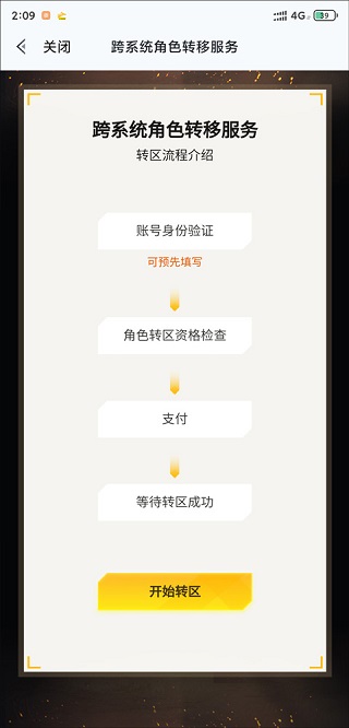 5、进入转区流程,进行身份验证、资格检查、支付费用,之后等待完成即可。