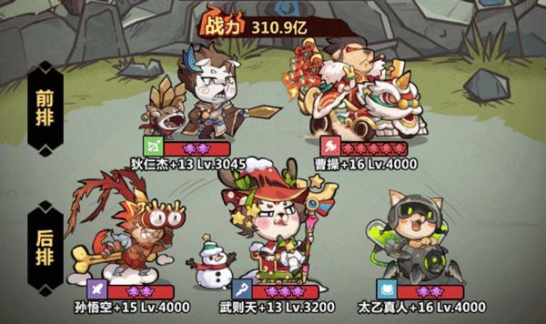 如果遇到推图卡关和推图速度慢的情况,可以考虑用主C同时搭配一个带增益的姜子牙与带减益的孙悟空,在强化我方战力的同时狠狠削弱敌方的战力,想想就很刺激!