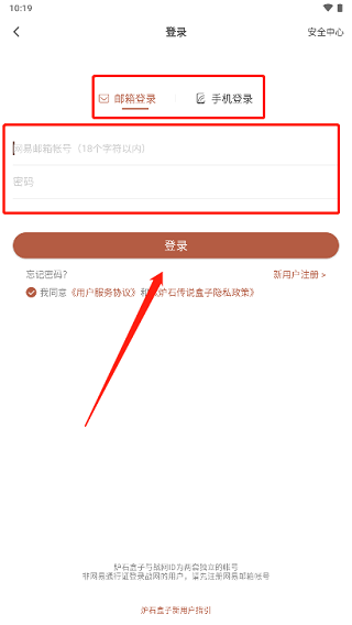 2、选择登录方式:邮箱登录/手机号登录,输入账号密码,