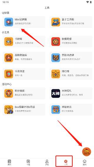 3、登录完成后,点击右下角记牌器图标,或者在【工具】页面点击“mini记牌器”,