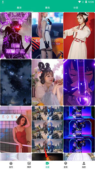 1、在首页可以看到有最新、最热、推荐、分类等壁纸;