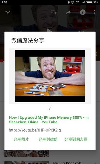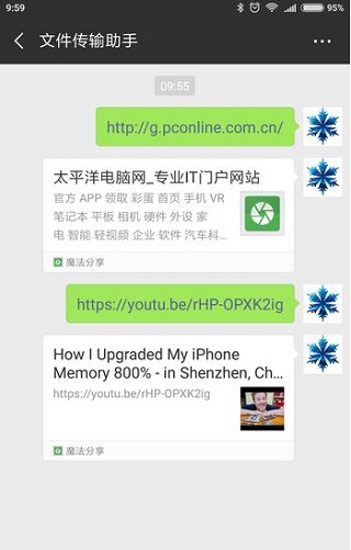 3、将内容分享到魔法分享,会自动生成带简介乃至带图的链接,视觉效果上就漂亮不少。特别是某些视频链接,利用魔法分享APP分享到微信,还会生成视频的封面,的确高大上不少。