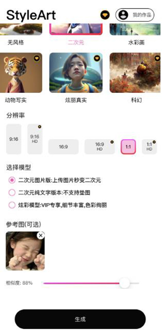 另外,抖音最近很火的个人照变二次元照也能通过StyleArt绘画软件实现,只要在选择模型中选择二次元图片版,上传图片就能秒变二次元,想要get同款的朋友赶快来下载试试吧!