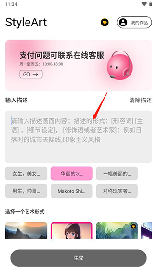 StyleArt绘画最新版是最近非常火的一款AI绘画神器,这个软件的神奇之处在于只要采用文字的形式简单的进行描述,就能通过AI技术将你的所想快速生成令人惊艳的绘画作品。StyleArt绘画软件简单易用,尽管你没有任何的绘画能力和天赋,只要你有无尽的想象力和创意,那么就能创造出精美的绘画作品,所以人人都能轻松使用。而其详细的使用方法就是在输入框中简单描述一下你的想法或任何你能想像到的,选择你想要的艺术形式,点击生成并等待几秒钟,你就能看到你自己创造的元宇宙。与他人分享您的图片或将其用作壁纸,让其他人看到您的天马行空。