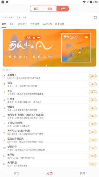5、此外,它与别的软件还有点不同,应用内还有着超多流行铃声供用户下载使用