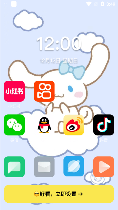 3、如果喜欢的话点击下方的【设置】即可,设置好后,返回手机桌面就可以看见新壁纸啦。