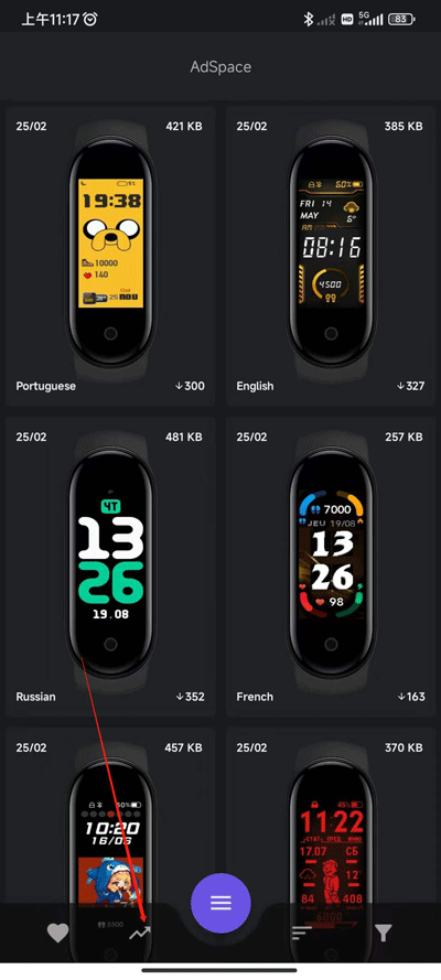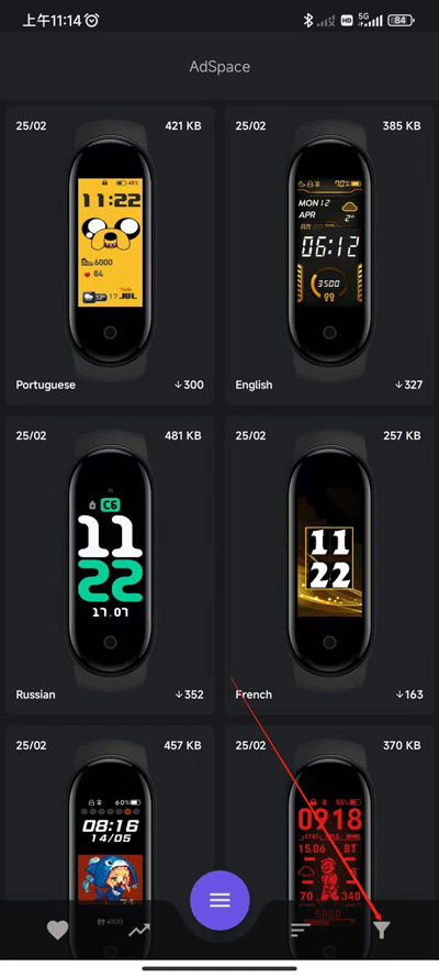 使用教程也简单,比如想显示心率的话,先选好表盘,然后在小米健康里开启心率检测就行了。筛选表盘的时候,用漏斗图标按需求找就行,下载量也能轻松查看。软件还支持多种语言,界面也很漂亮,每天都有新样式,心情也会变好吧。