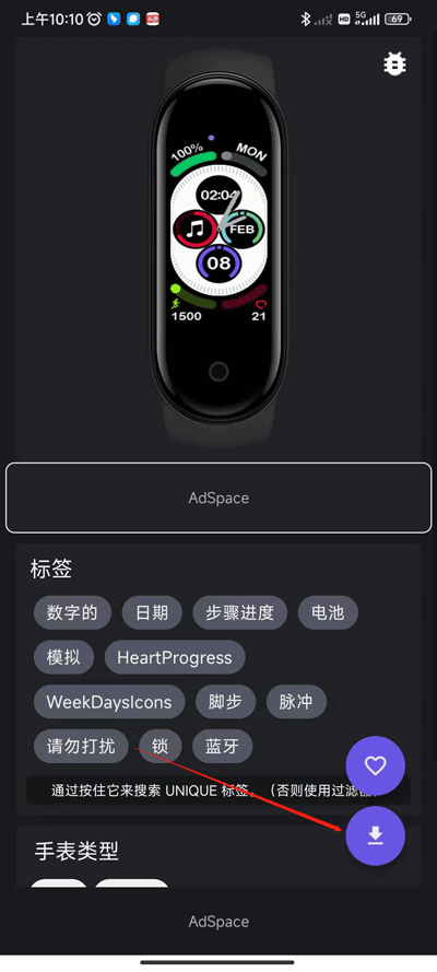 2、选择好自己心仪的表盘后,点进去,点击如图所示的下载按钮即可下载喜欢的表盘