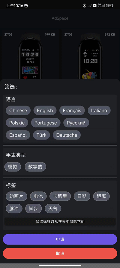 5、点击漏斗按钮可以精准的筛选出想要的表盘样式