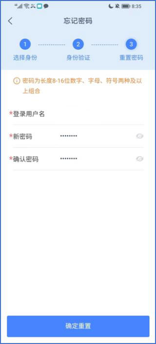 家长拿到班主任或学校管理员提供的重置码,输入个人基本信息,重置码信息,点击【下一步】进行校验,校验通过后,设置新密码,点击【确认重置】