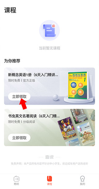 4、如果需要购买新概念英语课程,可回到主页点击“课程”