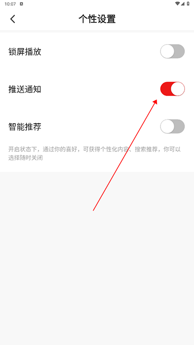 4、最后在【个性设置】内点击关闭推送通知即可。