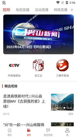 2、“视听”界面则是相关的新闻联播;