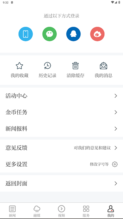 5、在我的页面,选择活动中心、金币任务、邀请好友、意见反馈等。