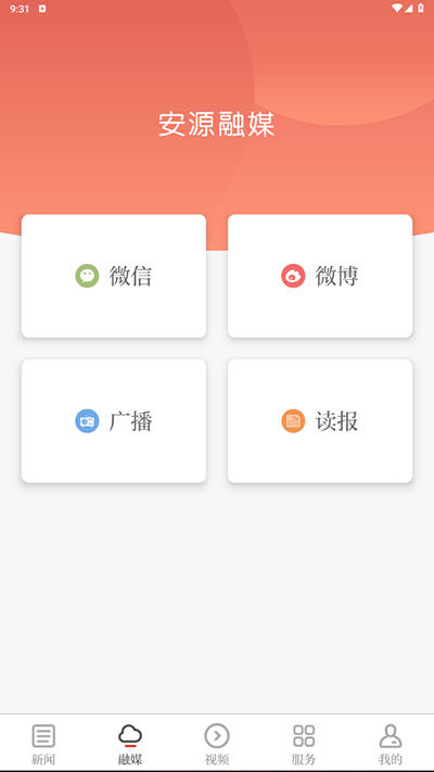 2、进入融媒页面,即可查看汇聚的媒体,比如微信、广播、微博、电视等。