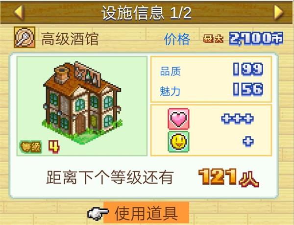 建筑物还具有等级,最高五级,通过人物使用次数的增加升级,升级会提升其三个属性及属性上限。