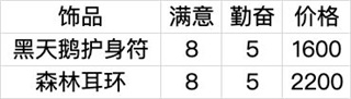 以下为装备普通吊坠时,赠送饰品所增加的满意度/勤奋度。
