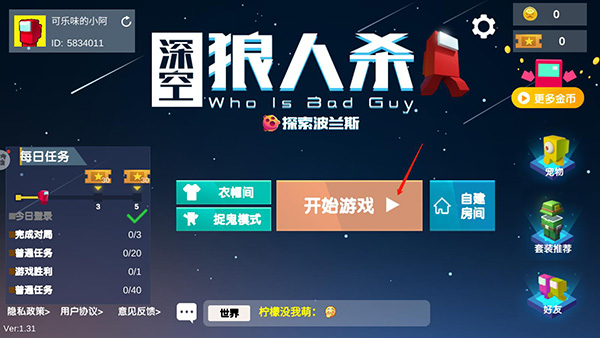 1、下载打开深空狼人杀游戏,点击进入游戏;