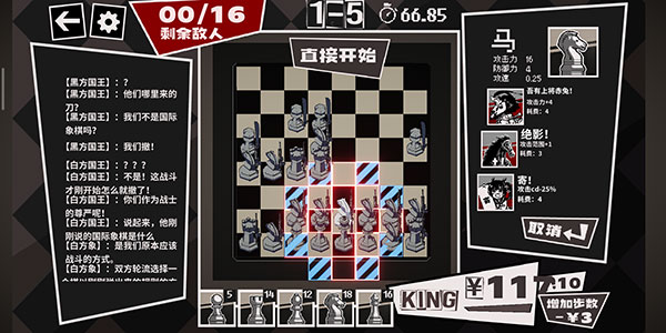 2、观看完开场动画之后,点击相应棋子即可移动棋子,棋子移动规则与国际象棋一致,右下方为可移动棋子的步数,移动步数可通过消耗金钱增加
