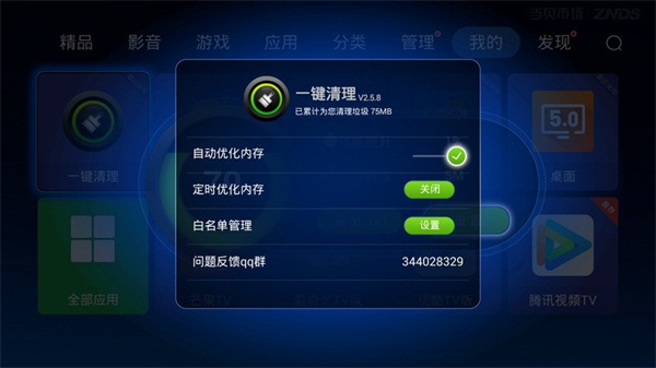 这款工具是专为安卓电视和盒子设计的清理优化软件,操作起来非常简单,只需要用遥控器点一下图标就能自动清理设备里的多余进程、网页缓存、视频缓存等各种垃圾文件。它不仅能够释放内存空间,还能让电视运行得更流畅。