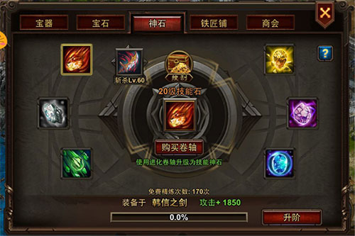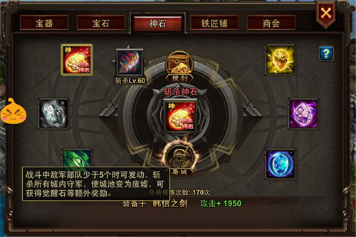 屠城攻城也需一定的条件,当玩家拥有6颗技能神石时,即可使用屠城功能。