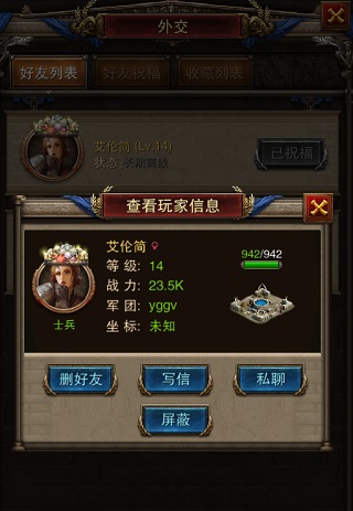只有上过战场的人才能明白战友的可贵,《罗马帝国》精心打造的社交系统能够让你快速结交志趣相投的好战友,通过外交系统,玩家可以和游戏中认识的朋友保持联系,好友之间互相祝福赠送能量,也可以收取好友的祝福增加自己的能量进行互动,建立稳定的纽带,轻松享受社交带来的快乐。也能让你迅速找到仇人时刻监视他的动态,趁他病要他命。一、外交系统