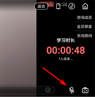 3、这样一来,通过连麦房间页面右下角的按钮,大家就可以直接关闭麦克风了,而且点击右上角的按钮还能够设置“全员禁麦”
