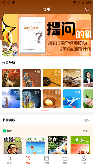 2、进入发现,用户可以根据分类导航,找寻类别书籍