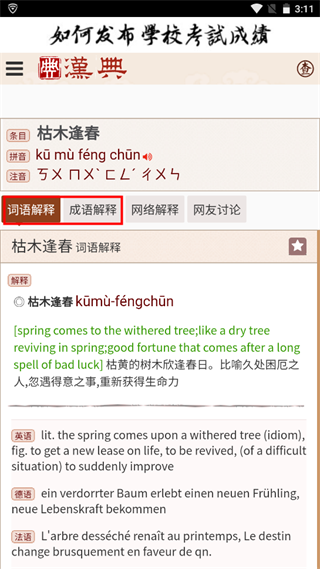 汉典网app是一款致力于为用户提供全面、便捷的汉语词典服务的软件。它以丰富的汉语文化知识为基础,为广大用户提供了一站式的汉语学习平台。这款软件涵盖了所有汉字、词汇和成语,为使用者提供了详尽的释义和全面的知识点,使得用户在学习汉语的过程中更加轻松愉快。汉典app的特点之一是其丰富的词库。它涵盖了各种类型的汉字、词汇和成语,包括常用字、生僻字、成语典故等,满足了不同用户的学习需求。同时,汉典app还提供了详细的释义,让用户能够更好地理解词语的意义和用法。