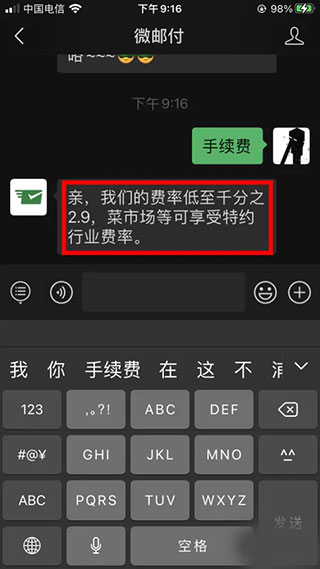 微邮付的手续费为0.29%,如果是菜市场可享受特约行业费率。