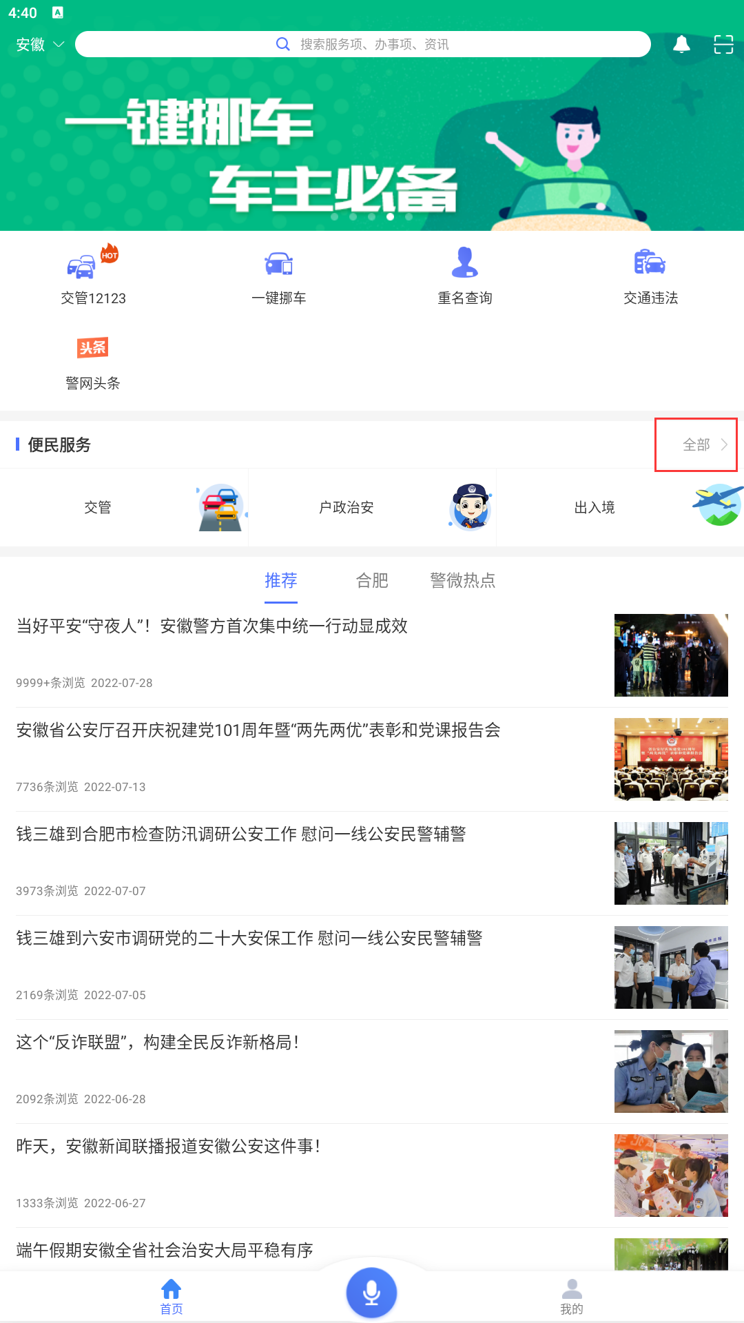 1、点击首页中的便民服务中的全部。