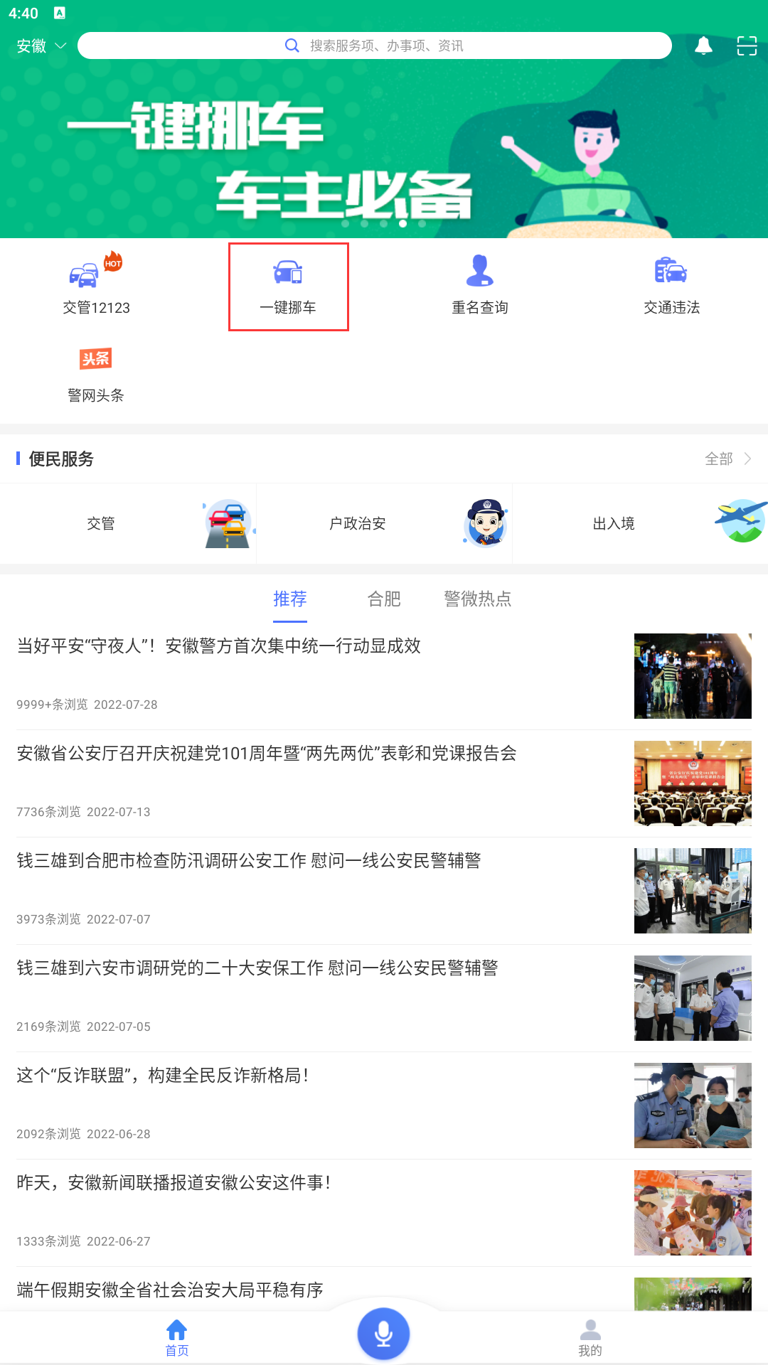皖警便民服务e网通怎么用挪车服务?
