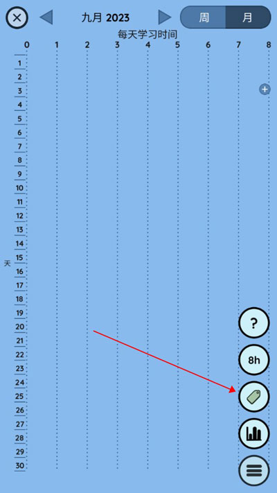 2、点击条形图进入学习跟踪器。追踪器会自动记录与计时器一起学习的时间。您还可以手动添加时间和编辑记录的时间在周查看跟踪器。