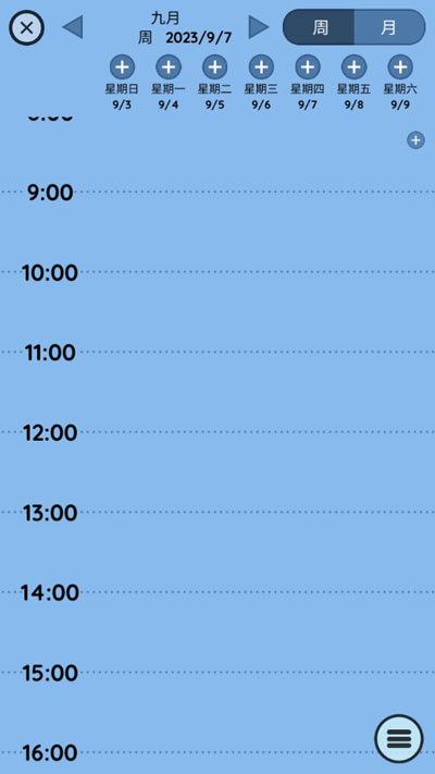7、您也可以从月视图切换到周视图,点击右上角的切换。您不能在月视图中编辑数据,但可以在周视图中编辑数据!