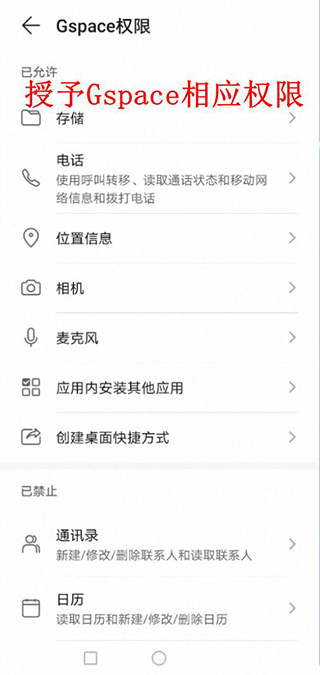 三、在鸿蒙系统设置中,授予Gspace应用相应的系统权限: