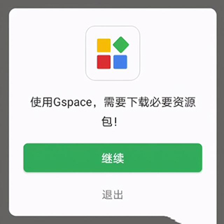 3、根据提示,下载安装必要的资源包,点击“继续”即可,Gspace会自动下载安装好GMS所需文件。