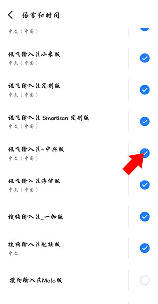 3、再次点击讯飞输入法中兴版,来到下方界面后,点击启用讯飞输入法